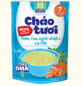 CHÁO TƯƠI SG FOOD BABY – TÔM, RAU NGÓT NHẬT & CÀ RỐT (240G)