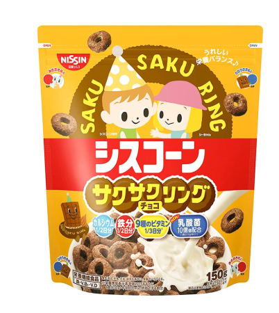 Kết cấu: Dạng vòng giòn ($サクサクリング$), giữ độ giòn lâu khi ăn với sữa.